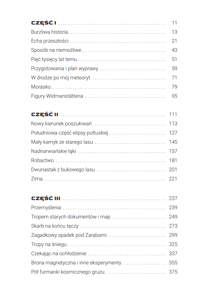 Ta książka jest przewodnikiem dla każdego, kto pargnie dotknąć wszechświata – dosłownie i w przenośni. Znajdziecie w niej inspiracje i wskazówki, dzięki którym dowiecie się, co zrobić i gdzie szukać, by móc zamknąć w dłoni okruch kosmosu. Podążycie śladami człowieka, dla którego tropienie meteorytów stało się prawdziwą pasją.