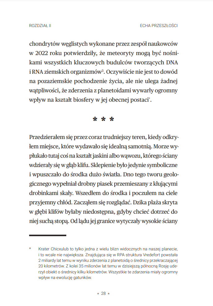 Konrad Łęcki wprowadza czytelnika w świat faktów i terminologii popularnonaukowej, by następnie zabrać go w pasjonującą podróż do niezwykłych miejsc, gdzie przeszłość splata się z teraźniejszością, a ślady dawnych kosmicznych wydarzeń wciąż kryją się w ziemi.